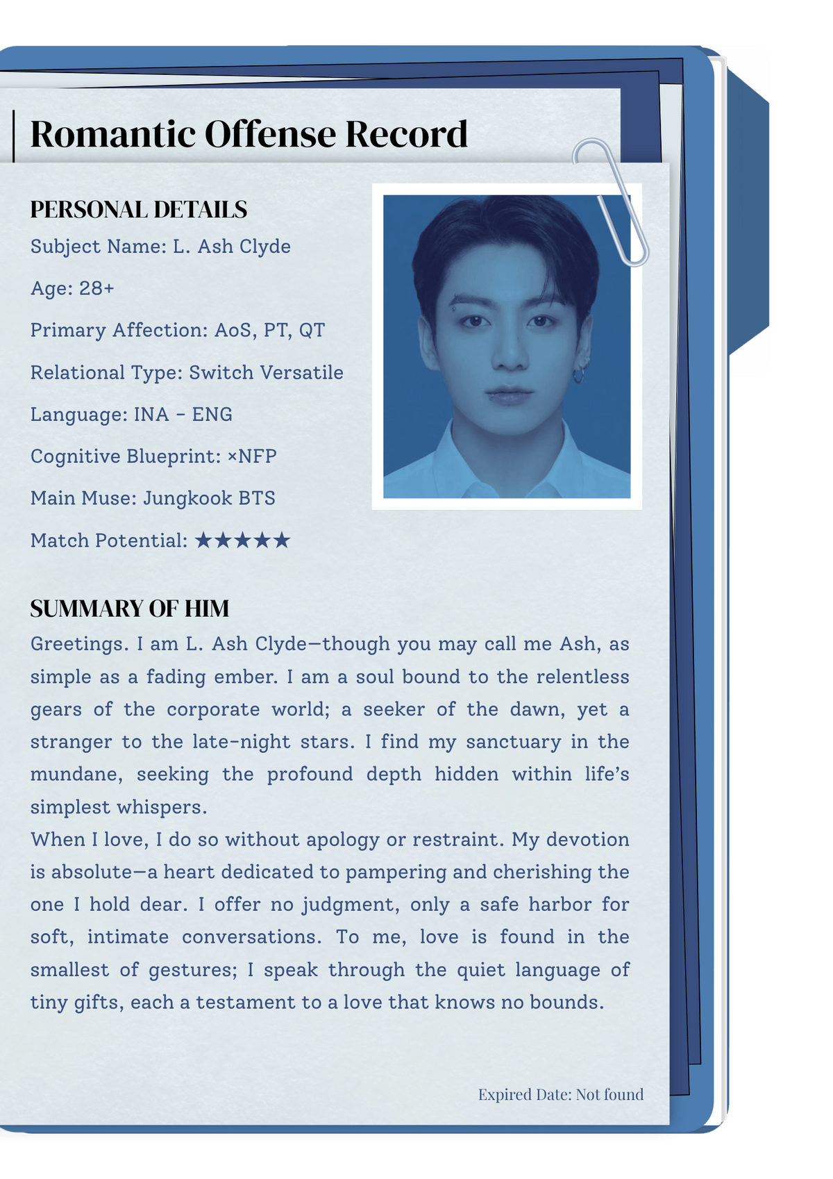 I am a chameleon of the heart, ready to mirror your deepest needs. The Romantic: Bound to you in a bond of BxB or BxG. Please kindly note, the romantic session only avail for mun 23+. The Platonic: A steadfast Brother, a loyal Bestie, or a guiding Father figure.